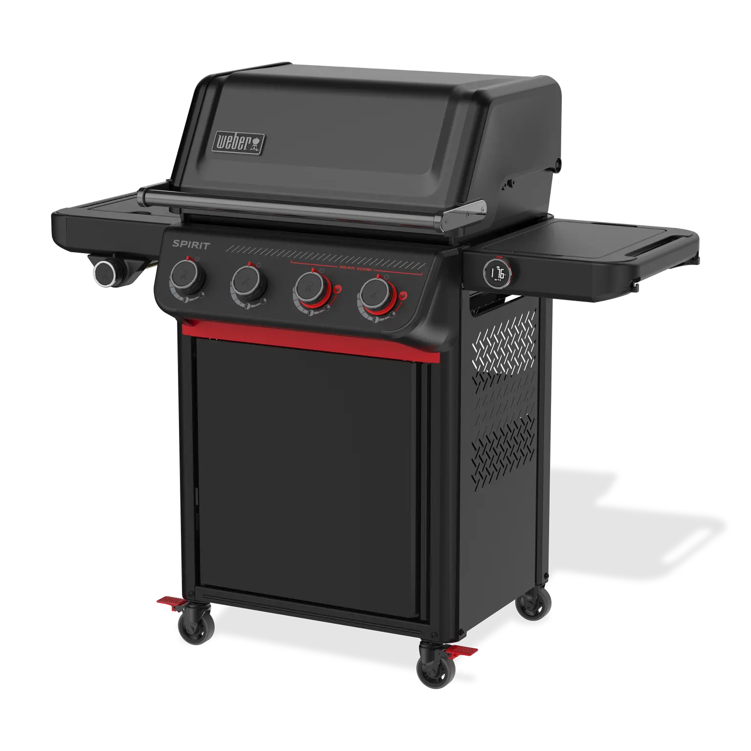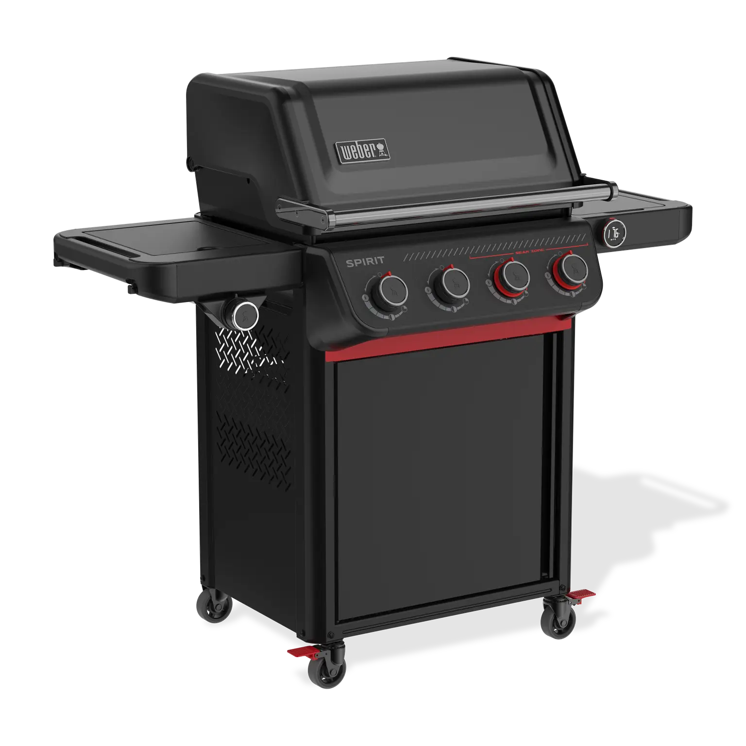 De Spirit® EPX-435R-smart gasbarbecue Stealth® Edition combineert geavanceerde technologie met een opvallend strak design. De volledig zwarte buitenkant, zwarte roestvrijstalen details en contrasterende rode accenten geven deze barbecue een moderne, stoere uitstraling. Deze Stealth® Edition is niet alleen een lust voor het oog, maar ook gebouwd voor topprestaties, waardoor hij perfect past in iedere tuin of buitenkeuken.